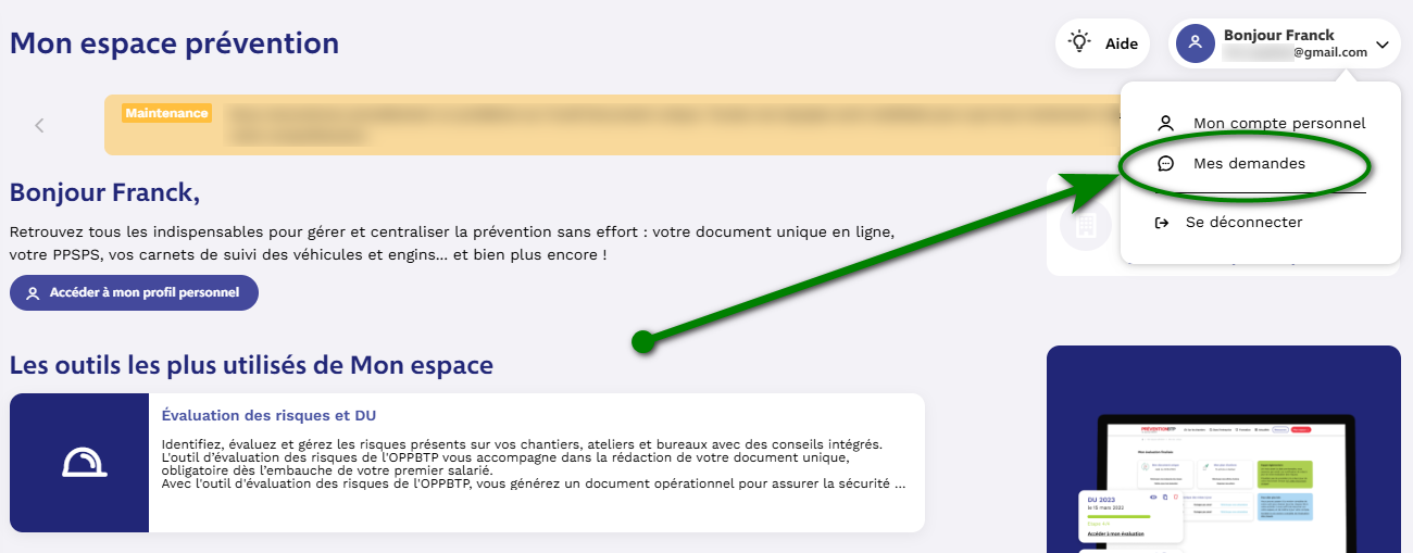 À la réception du message, connectez-vous à votre espace et rendez-vous dans "mes demandes" :