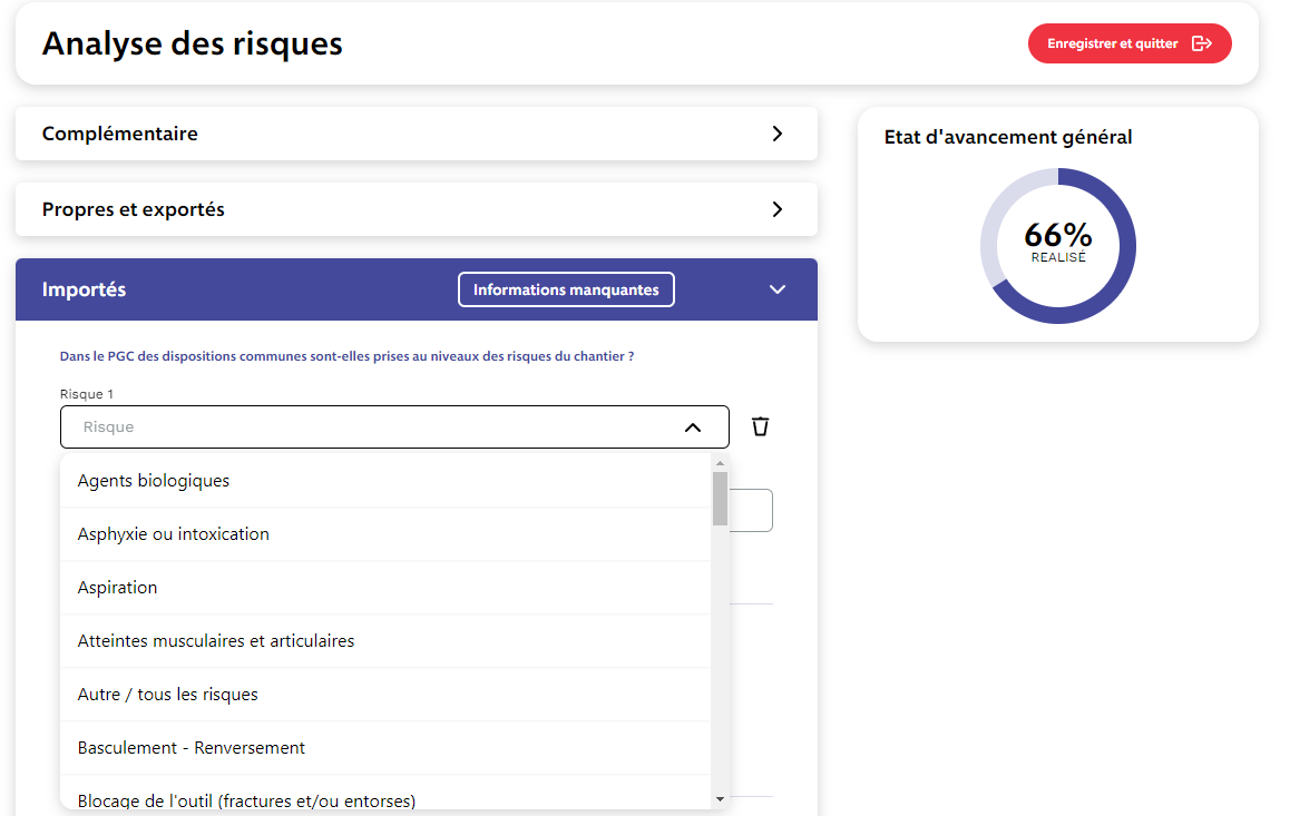 Dans la rubrique "Analyse des risques" et dans le volet "Importés", vous retrouvez un champ permettant de préciser les risques importés parmi ceux proposés :