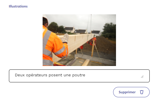 Il est possible d'ajouter des images dans les étapes techniques du "mode opératoire" en glissant vos photos dans le cadre.