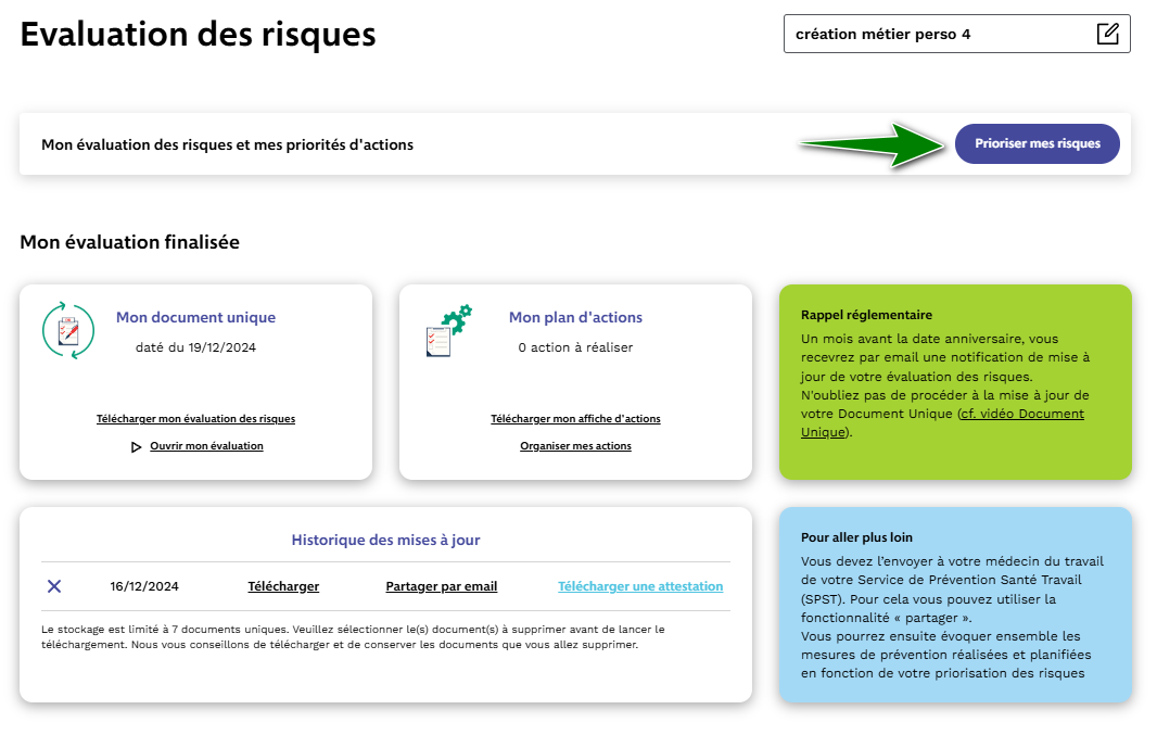 Il est possible en étape finale de l'évaluation des risques d'intervenir sur les priorités d'action, liées aux différentes combinaisons "situation de travail / risque associé".